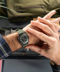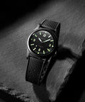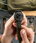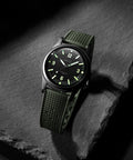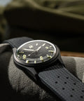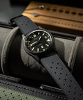 The Baltic x Time+Tide Hermétique Night Mode comes with two Tropic-style straps – one in black and one in green – made from FKM rubber, an ultra-soft and durable material offering unrivalled comfort.